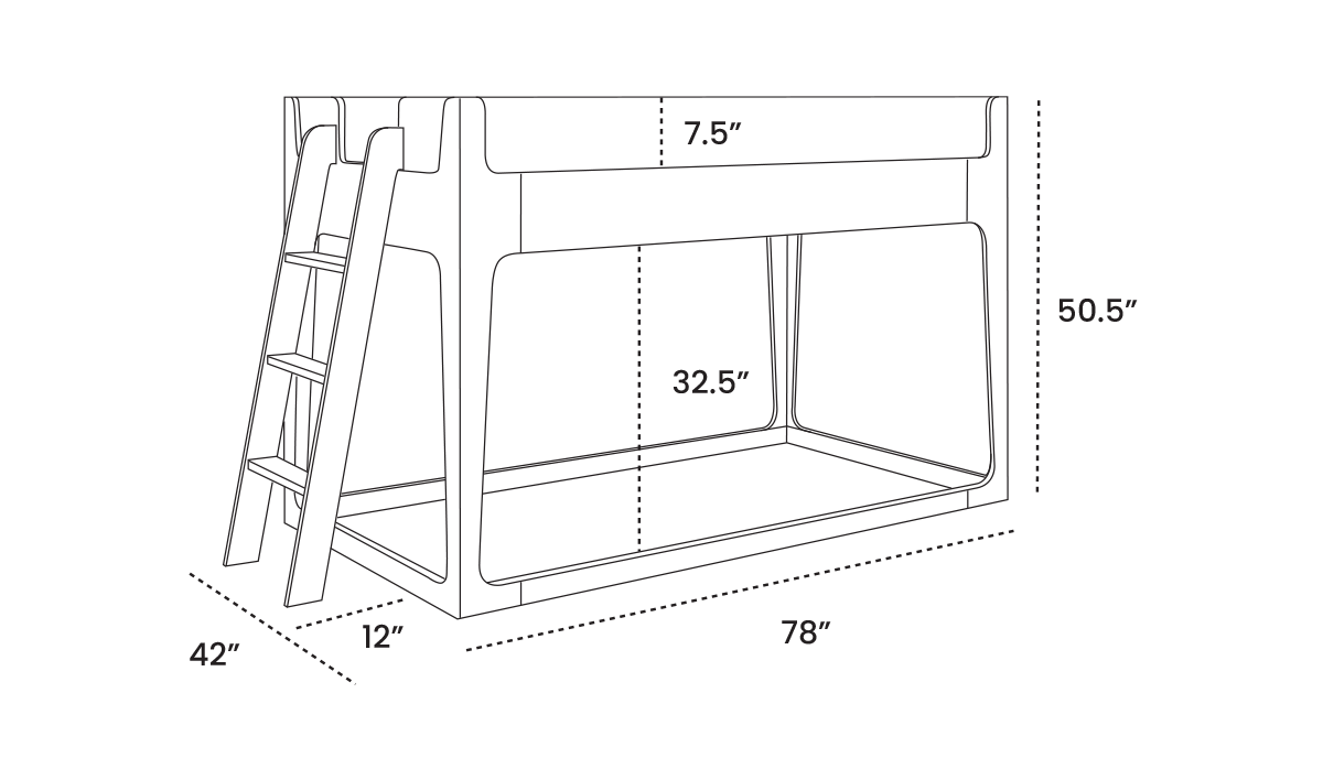 While both orientations fit a twin mattress (or two), the Perch Nest is full of possibilities: Use it as a loft bed with a ladder, where children ages 6+ can sleep on the top bunk (with a maximum 6"-deep mattress), leaving a play space or floor-level mattress below or As a canopy bed, it’s perfectly cozy and it’s compatible with the Perch Trundle Bed and Custom Trundle Mattress for sleepover fun.